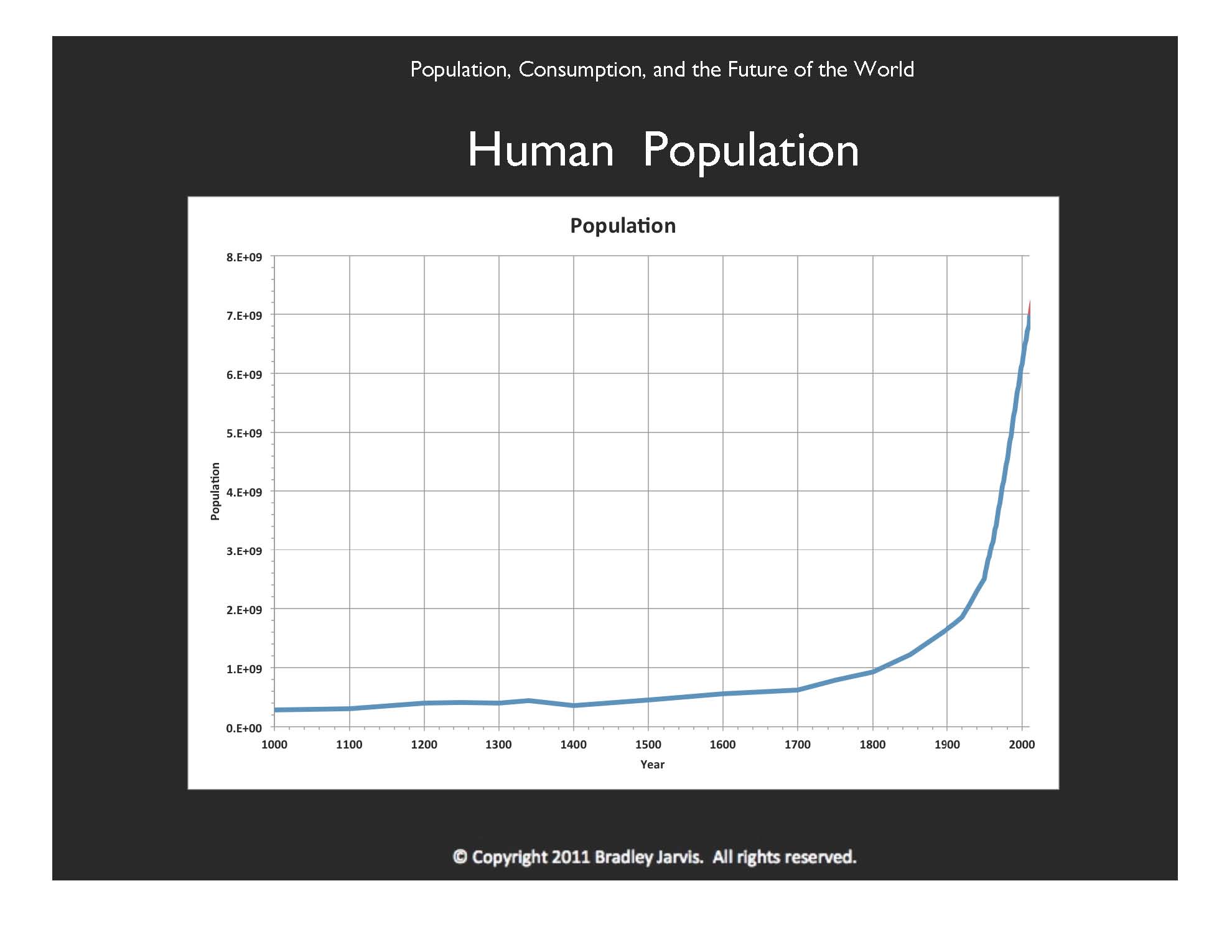 This graph shows how our population has changed since the year 1000 A.D. Clearly, it has grown most dramatically in the past 200 years or so, to about 7 billion people today.